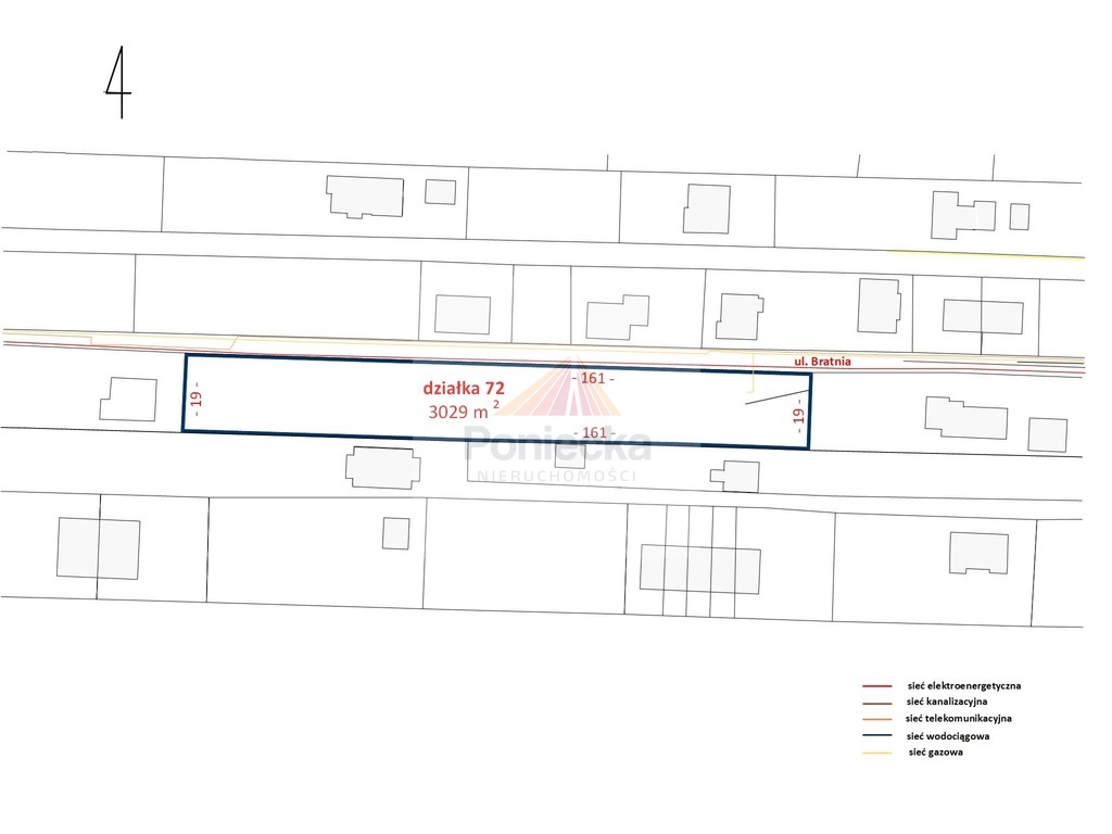 Przy ul. Bratniej znajdują się budynki wolnostojące oraz w zabudowie bliźniaczej na działkach o powierzchniach 280 m2 i 370m2. Istnieje możliwość podobnego podziału oferowanej działki, co umożliwia zabudowę nawet sześcioma budynkami bliźniaczymi. Właściciel wystąpił o decyzję o warunkach zabudowy.