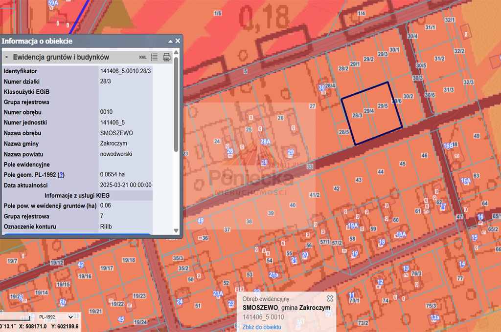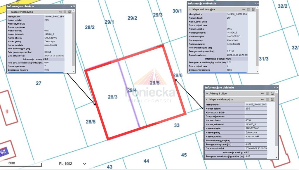 - działki nr. ew. 28/3, 29/4, 29/5 o łącznej pow. 1583 mkw