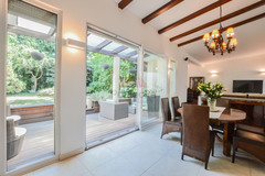 Przestronny jasny parter z dużymi oknami na wygodny taras i ogród.