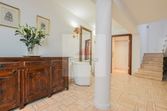Hol wejściowy z dużą szafą i łazienką gościnną, podłoga i łazienki w naturalnych kamieniach.