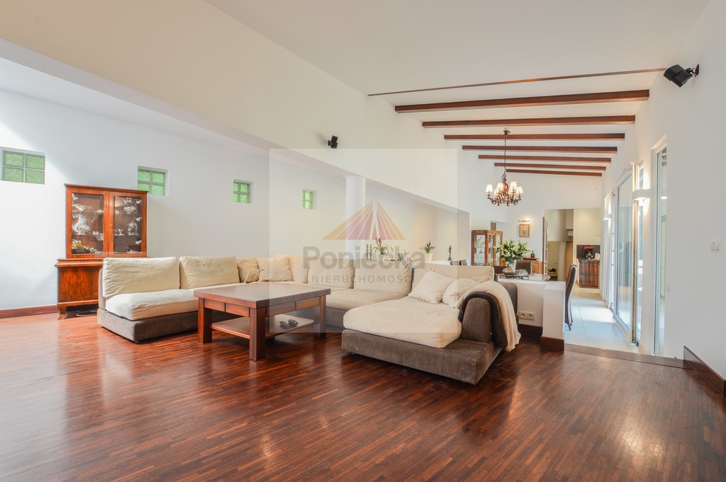 Składa się z jadalni (wysokość 360cm) połączonej z salonem.