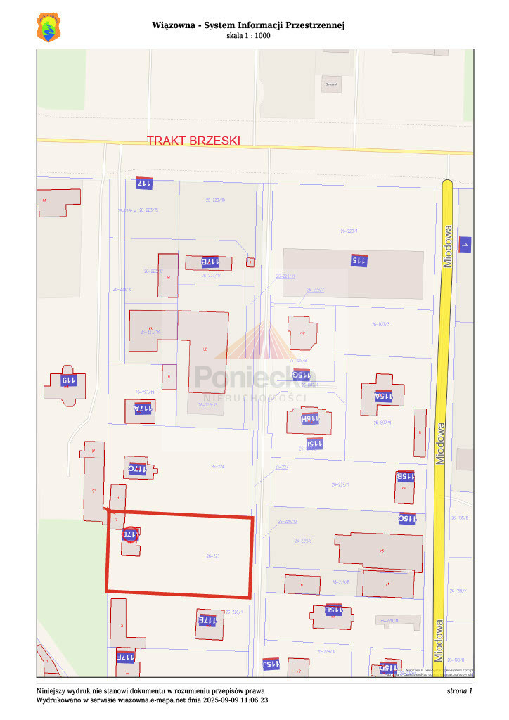 Działka posiada dogodny dojazd bezpośrednio z Traktu Brzeskiego (droga krajowa nr 2), zapewniający doskonałą widoczność i ekspozycję - świetne miejsce pod działalność, ale również do komfortowego życia w zielonym otoczeniu.