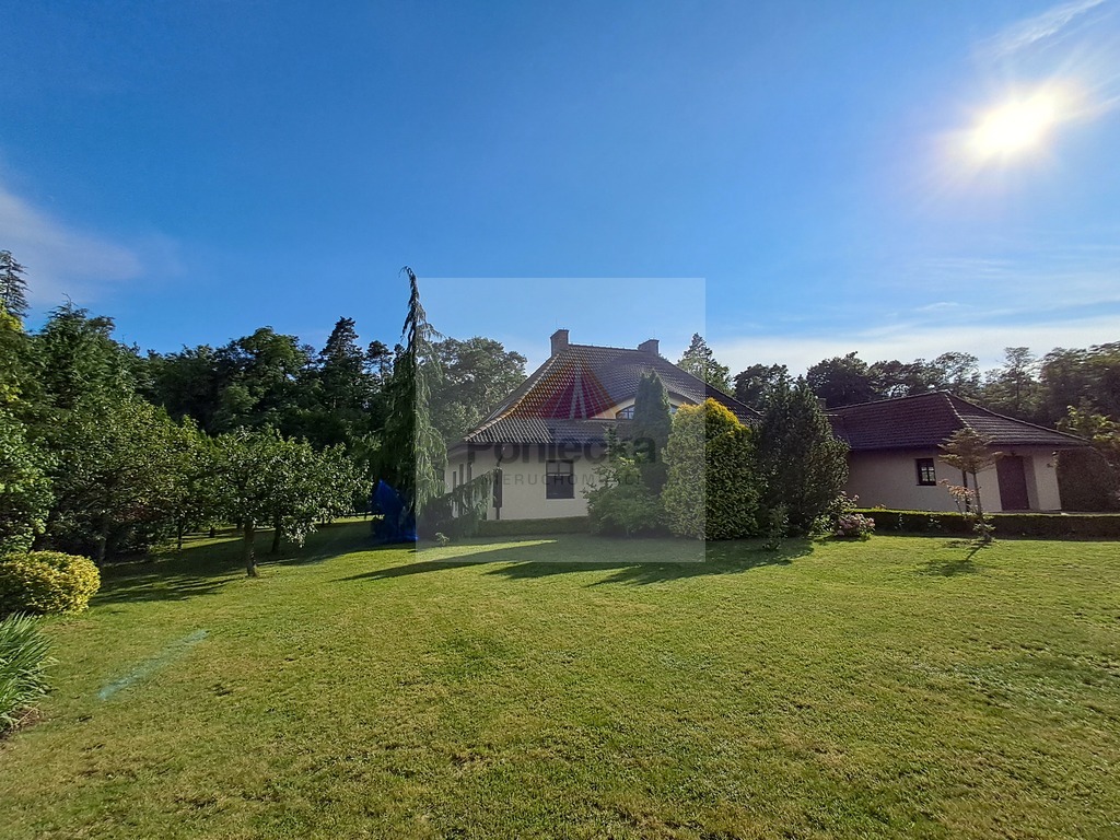 Dom usytuowany jest na dużej, pięknie utrzymanej działce o powierzchni 3254 m2. Ogród zachwyca ilością zieleni oraz starannie pielęgnowanymi drzewami. Na działce znajduje się również piwniczka z instalacjami przystosowanymi do obsługi planowanego stawu, co daje dodatkowe możliwości zagospodarowania przestrzeni według własnych pomysłów. Teren jest ogrodzony, co zapewnia bezpieczeństwo i prywatność.