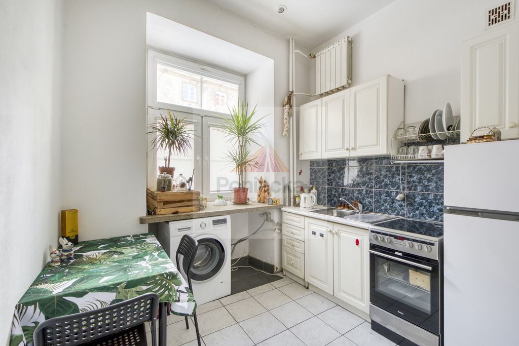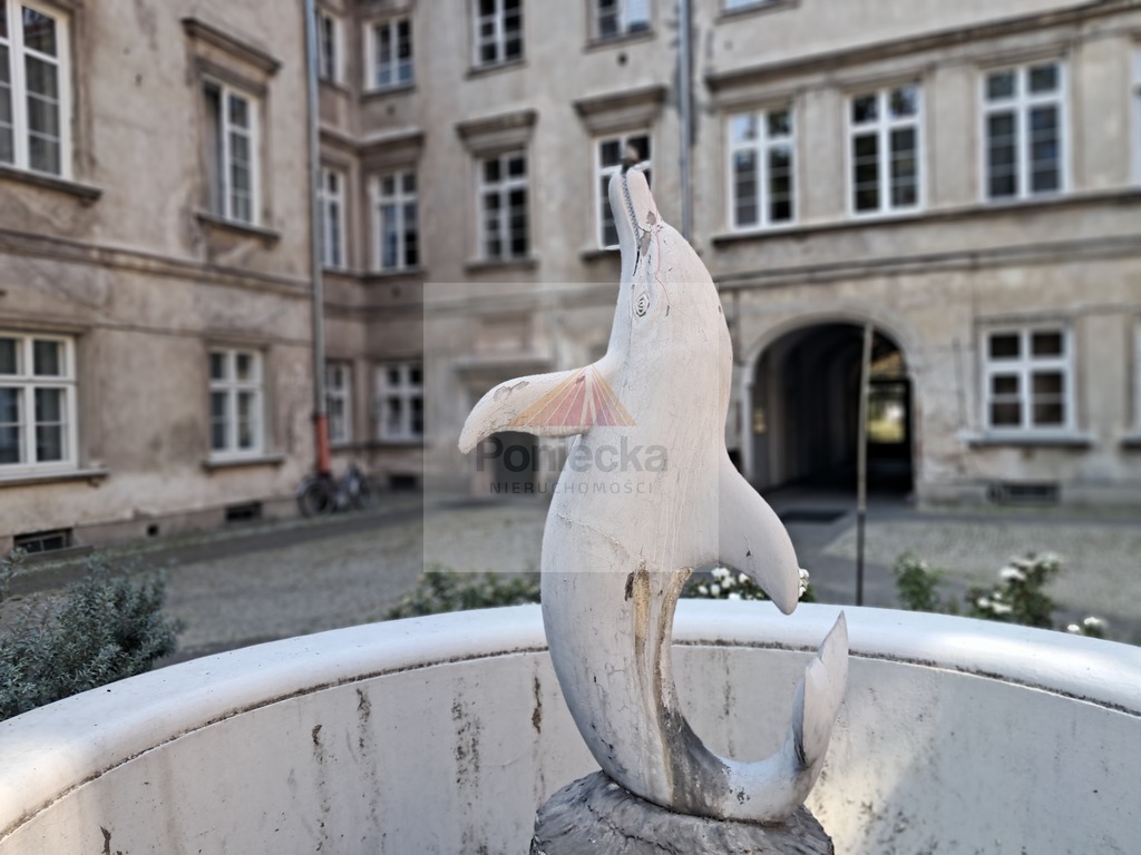 Jasne i ciche wnętrze, mieszkanie znajduje się na parterze, lecz dzięki dużym oknom wychodzącym na wewnętrzny dziedziniec z fontanną z delfinem, zapewnia komfort i naturalne doświetlenie. Klimat, kamienica z historią, unikalny projekt Józefa Lessela. Duży potencjał inwestycyjny, świetna lokalizacja i rozkład idealny pod wynajem lub adaptację na lokal usługowy