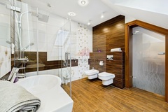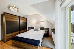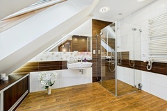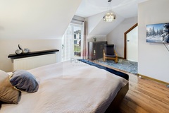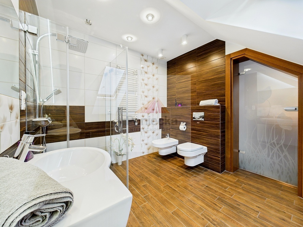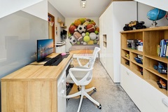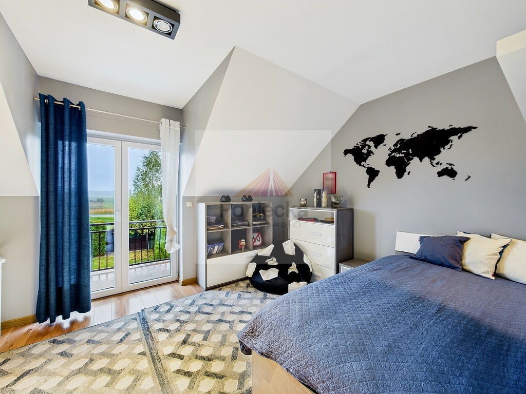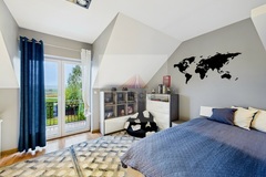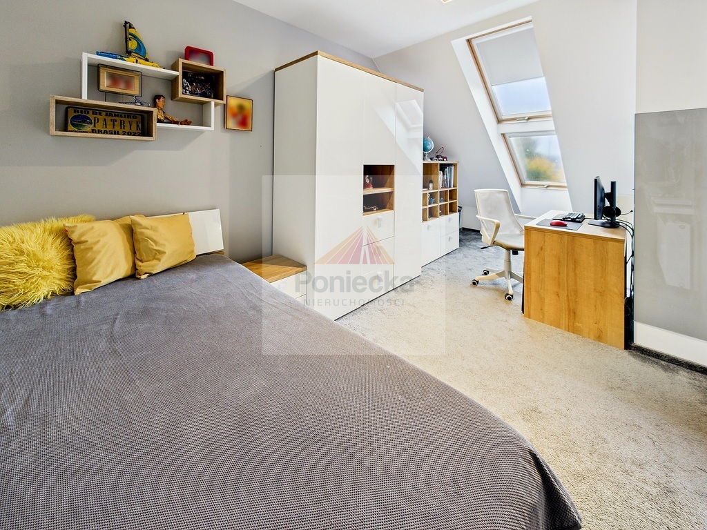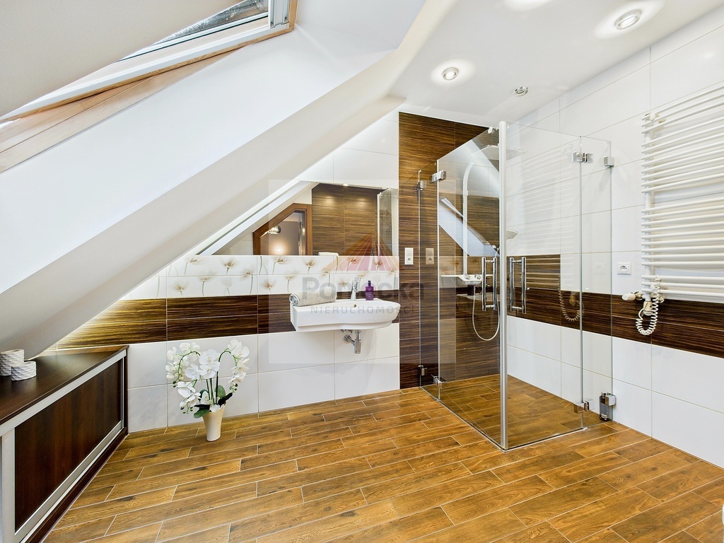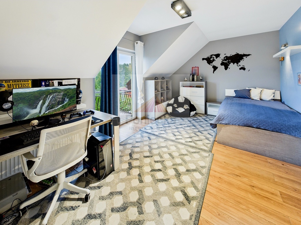 Na poddaszu przygotowano możliwość adaptacji dodatkowego pokoju ok. 12 m2 - z gotową instalacją ogrzewania, panelami podłogowymi i oknami dachowymi.