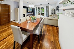 przestronny salon z aneksem kuchennym i wyjściem na taras,