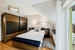 sypialnia z balkonem i prywatną łazienką z prysznicem.