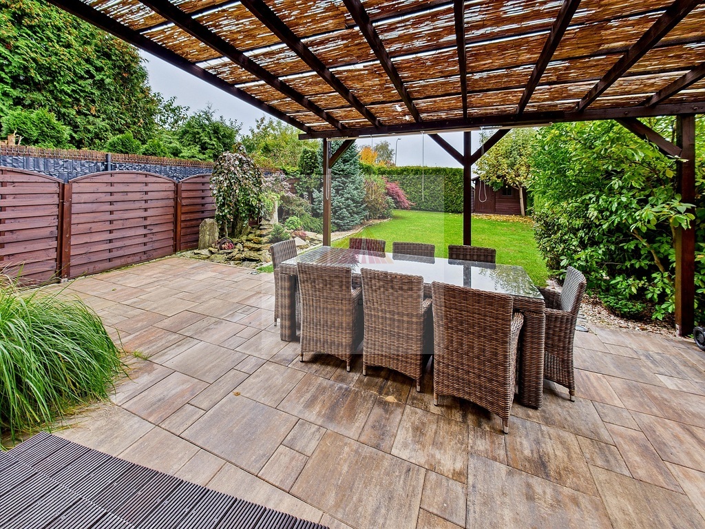 Taras obsadzony drzewami i krzewami, ogrzewany garaż i domek narzędziowy to dodatkowe atuty tej nieruchomości.
