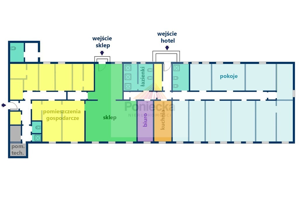 Na sprzedaż budynek użytkowy pełniący funkcję hotelu pracowniczego oraz sklepu z zapleczem. Obiekt cały czas funkcjonuje, obie działalności są prowadzone.
