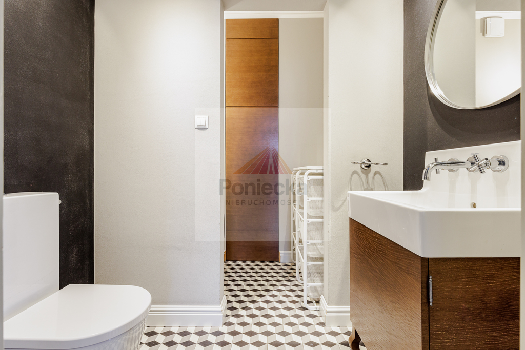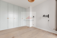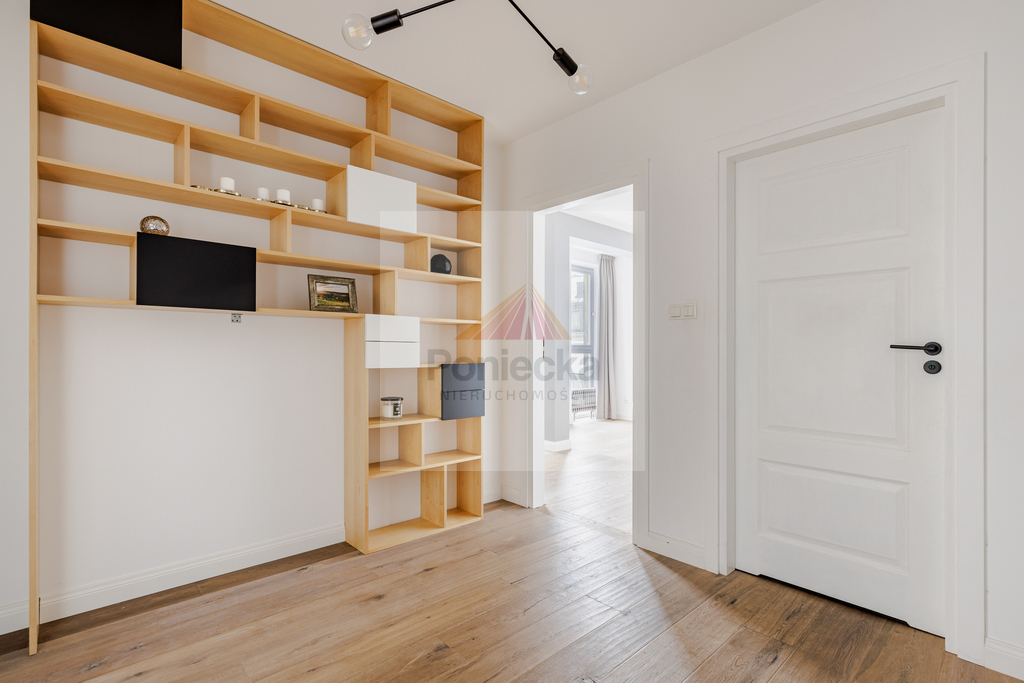 Apartament został wykończony w wysokim standardzie z dbałością o szczegóły. Szafy w zabudowie, stolarka drzwiowa oraz okienna wykonane są z litego drewna. Na podłodze położony jest dębowy parkiet.