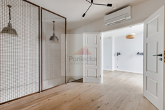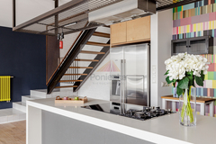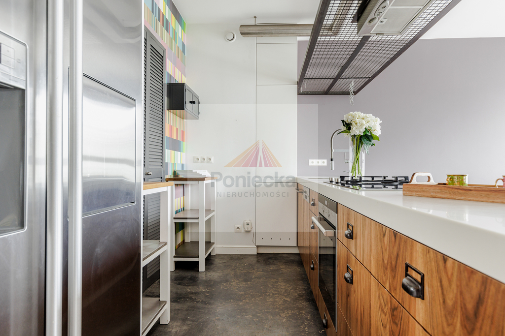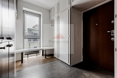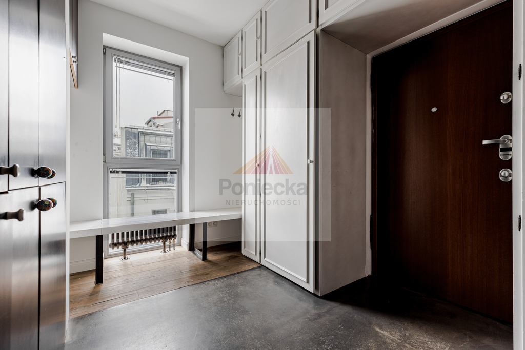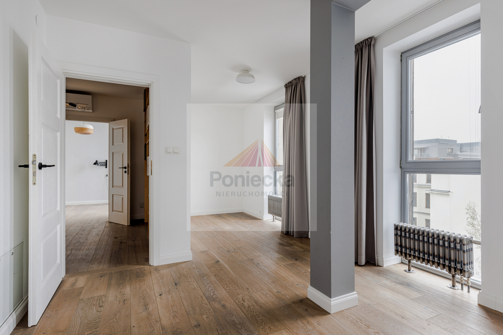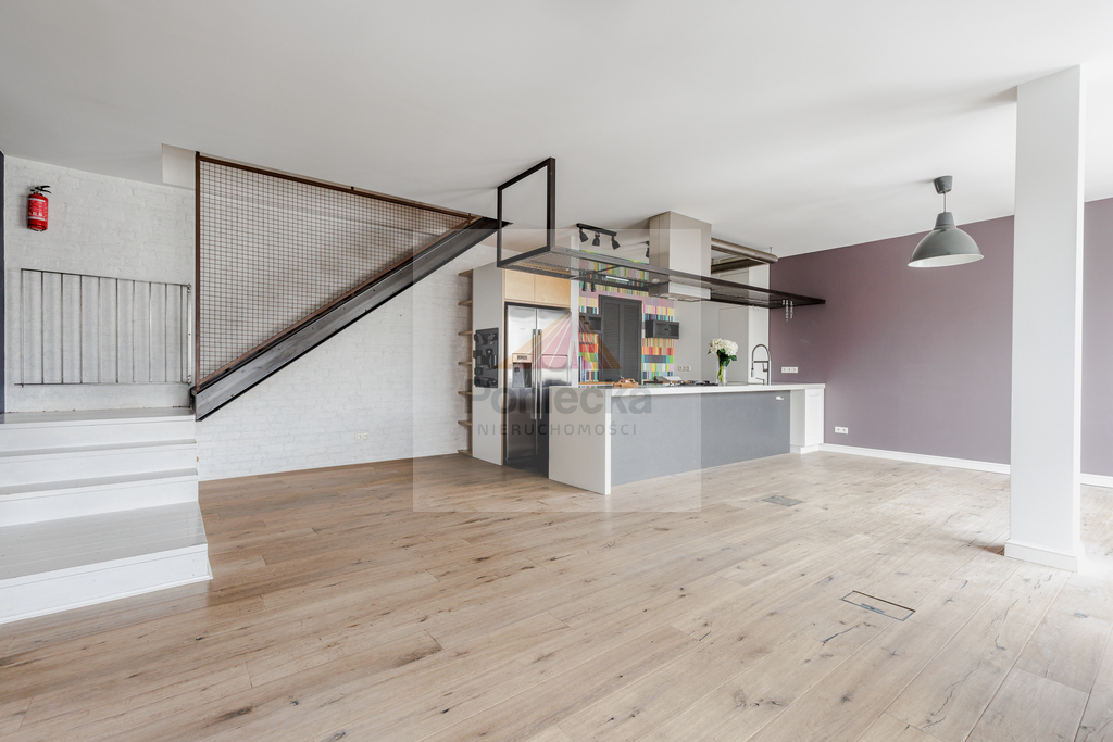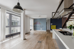 Dwupoziomowy nowoczesny apartament zlokalizowany na ostatnich piętrach pięciopiętrowej kamienicy. Jednym z jego atutów jest balkon, z którego rozpościera się wspaniały widok na centrum Warszawy.