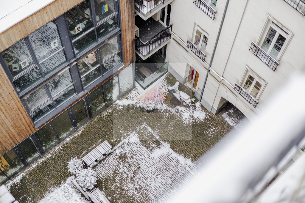 Apartament mieści się w gruntownie zmodernizowanej w 2010 roku kamienicy z początków XX w. Renowacja budynku została przeprowadzona z dbałością o zachowanie oryginalnych detali. Inwestor by zachować ślady historii, a konkretniej - ślady pocisków na fasadzie - postanowił wyeksponować fragment z dziurami po kulach i osłonił je szybą.