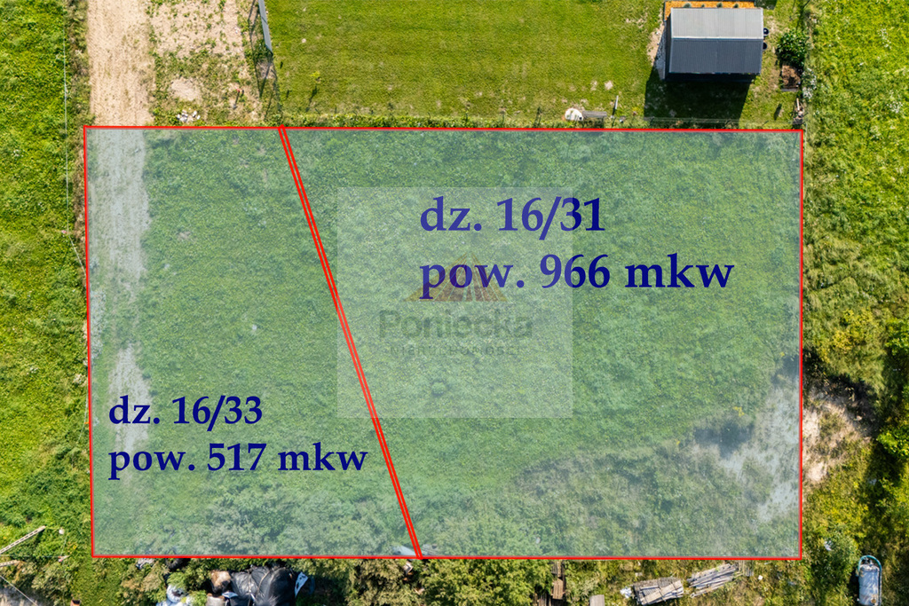 - działka nr 16/31 + 16/38 - powierzchnia 1008 m2 w cenie 130 000,00 zł