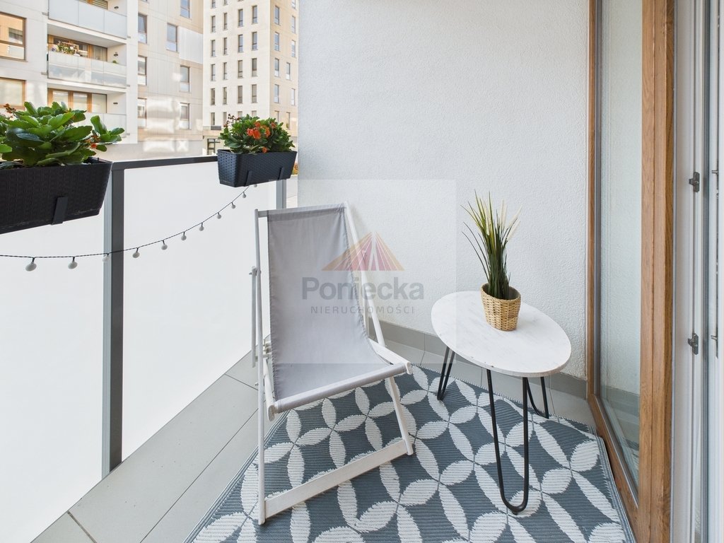 Przytulny balkon zaprasza do porannej kawy lub wieczornego relaksu na świeżym powietrzu, oferując dodatkową przestrzeń do odpoczynku i obserwowania otoczenia.