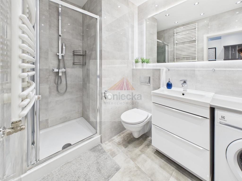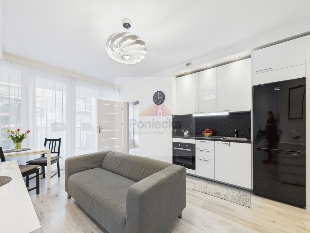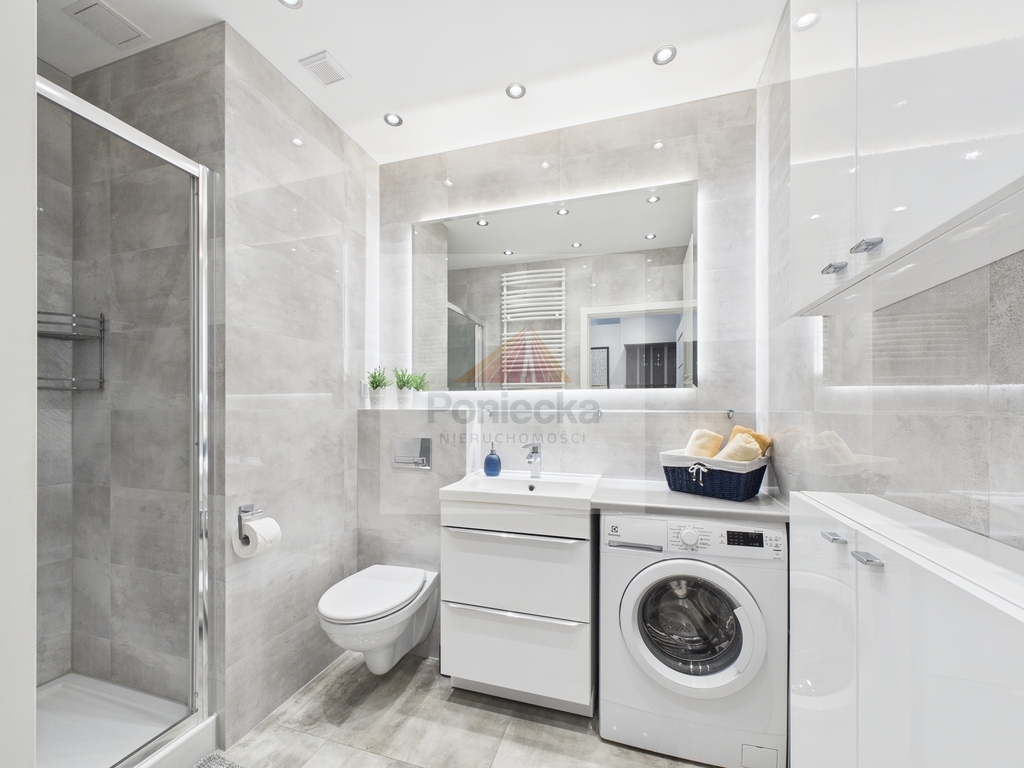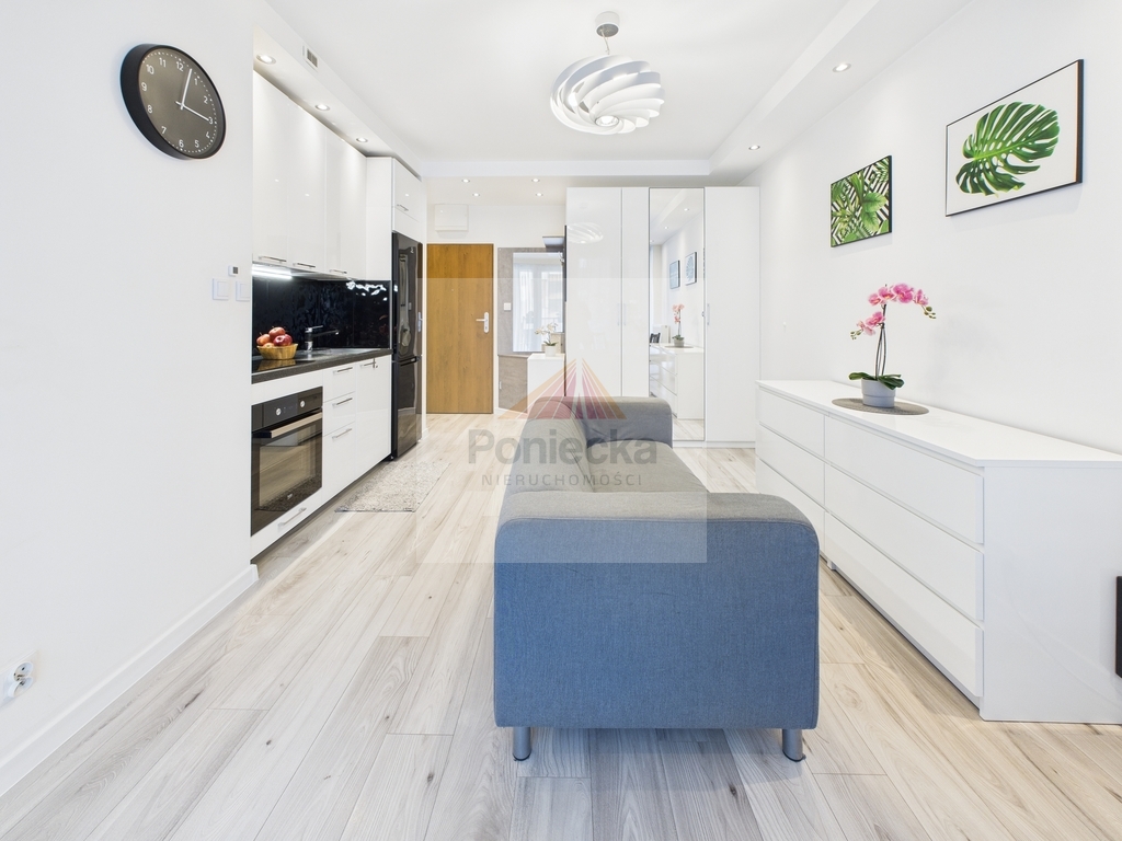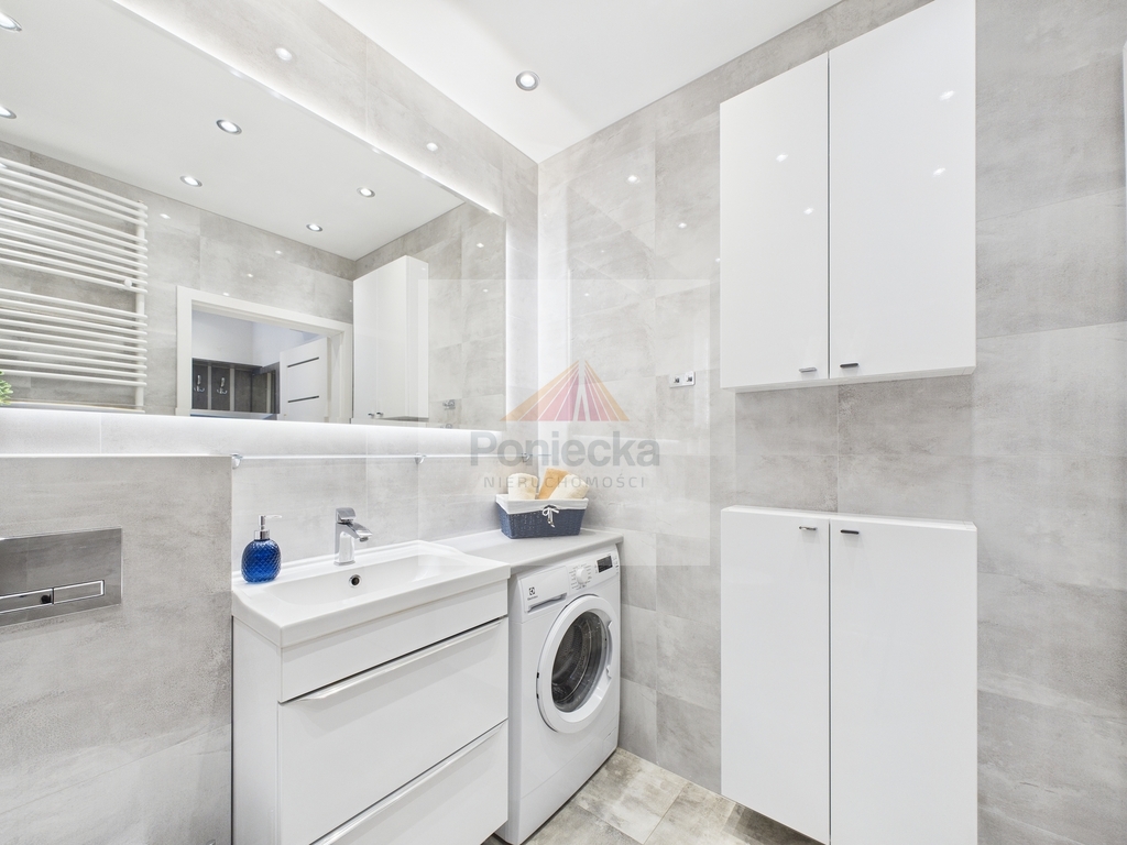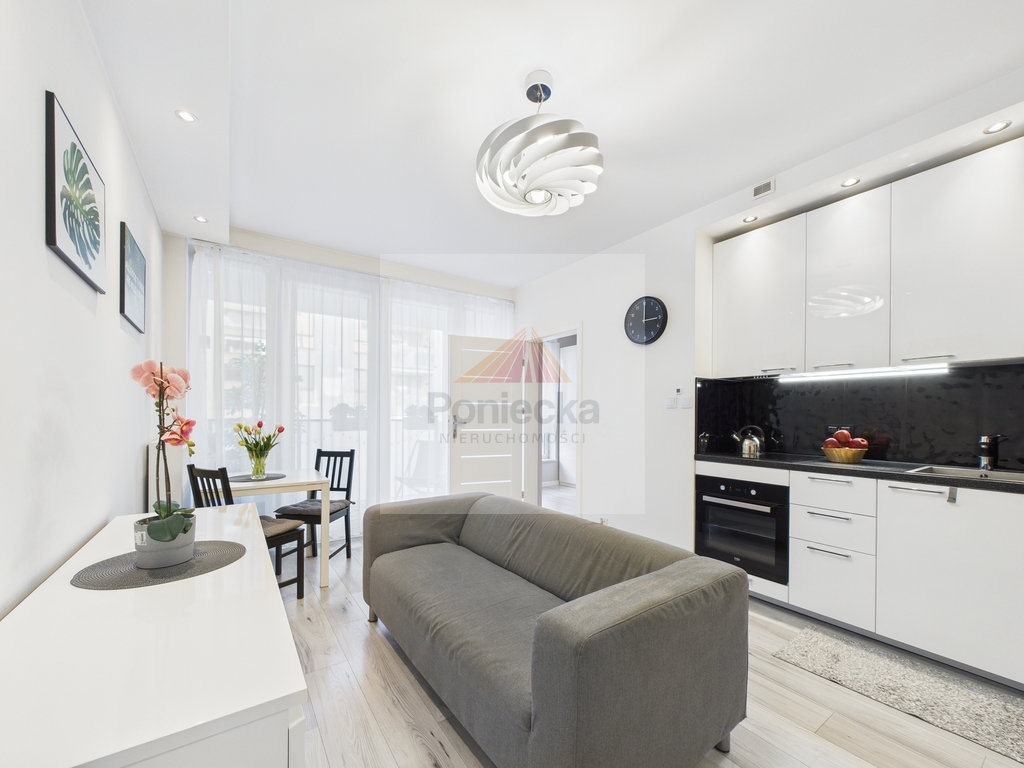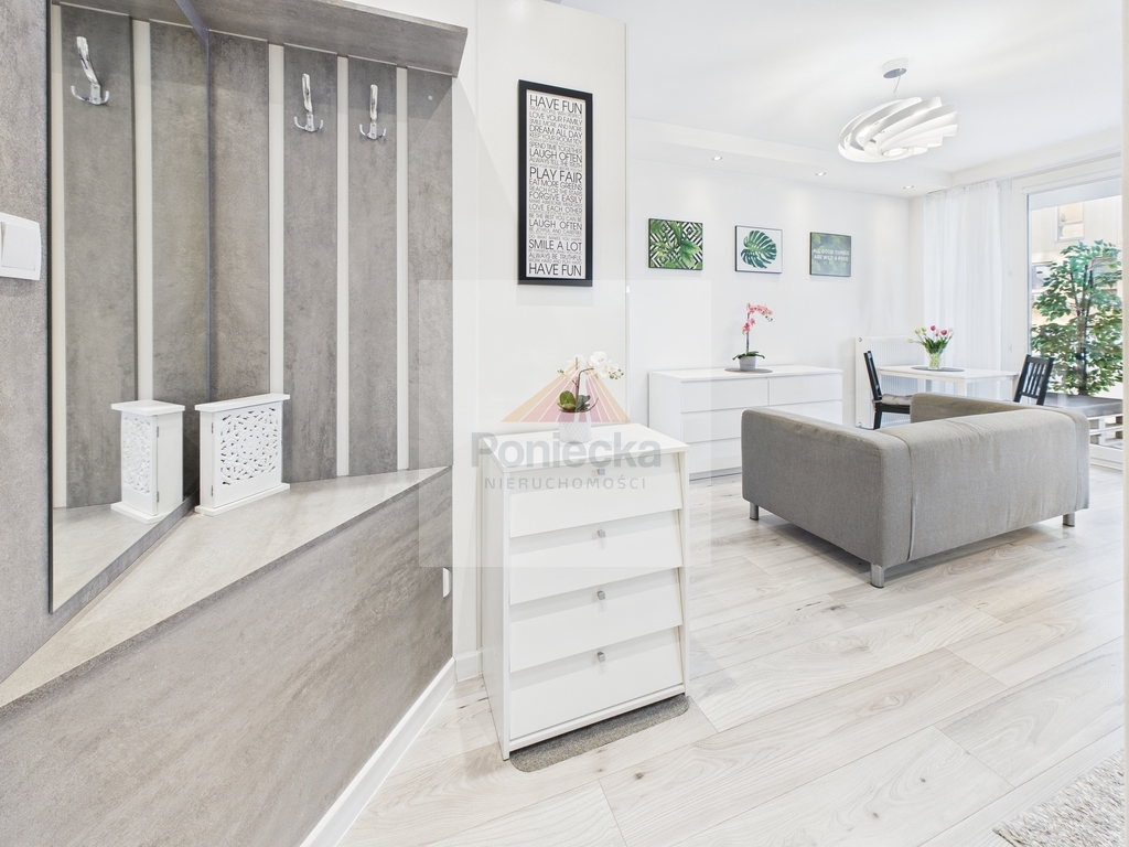 The interior has been equipped with high-quality appliances and built-in furniture, and numerous wardrobes and practical solutions provide plenty of storage space, keeping the flat tidy and functional at all times.