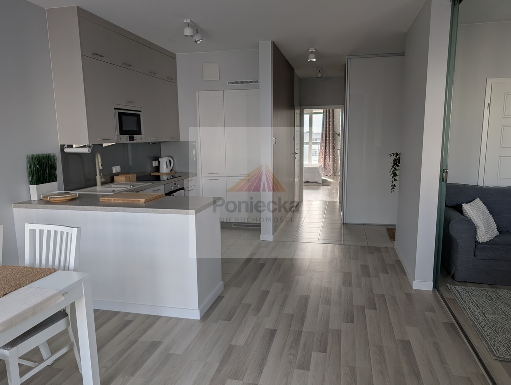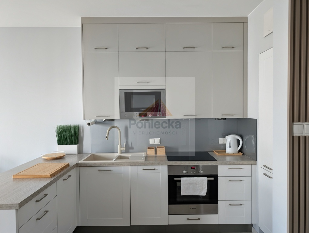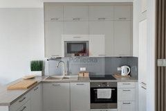 Mieszkanie jest w pełni umeblowane oraz wyposażone w sprzęty AGD i RTV pralka, zmywarka, czajnik, lodówka z zamrażarką, piekarnik, płyta indukcyjna, mikrofalówka, okap, telewizor.