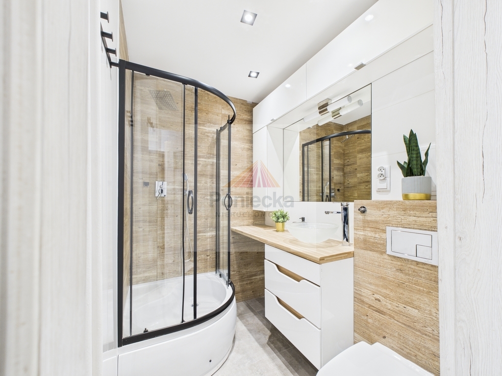- przestronnej łazienki wyposażonej w kabinę prysznicową.