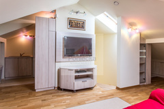 Poddasze to przestronna, wielofunkcyjna przestrzeń - świetna jako pokój zabaw, gościnny lub dodatkowy salon. Znajduje się tu także praktyczna pralnia z pralką i suszarką oraz liczne, estetycznie zabudowane schowki.