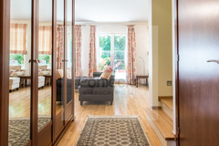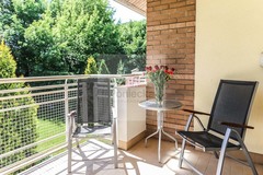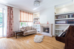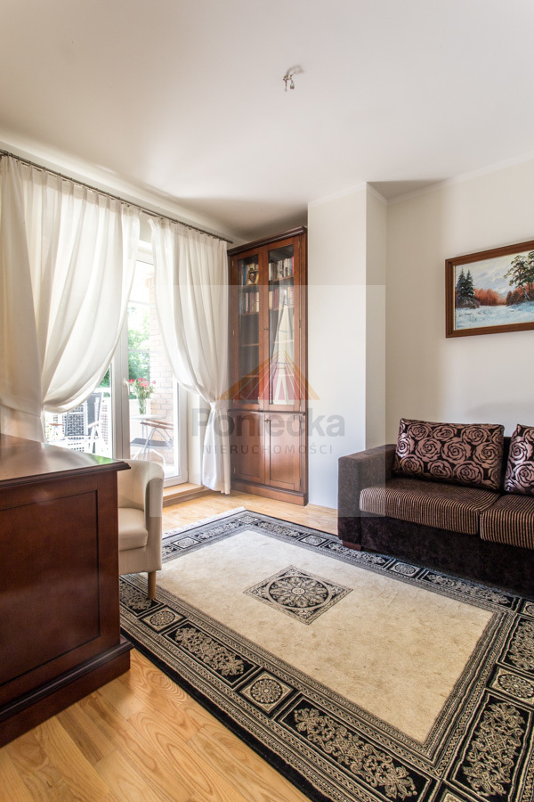 Z gabinetu i sypialni wyjście na zadaszoną loggię z widokiem na ogród.