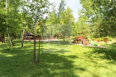 Wspólny plac zabaw, zadbany park i malownicze jeziorko.