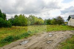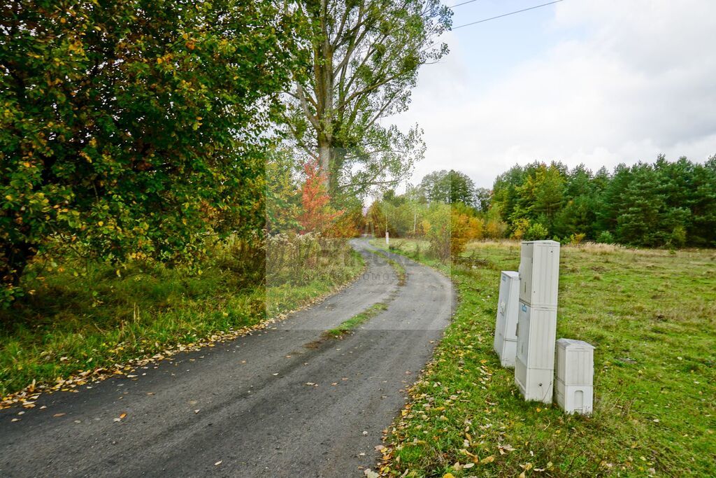 Dojazd do działki drogą gruntową. Linia elektroenergetyczna i wodociągowa w drodze przy działce.