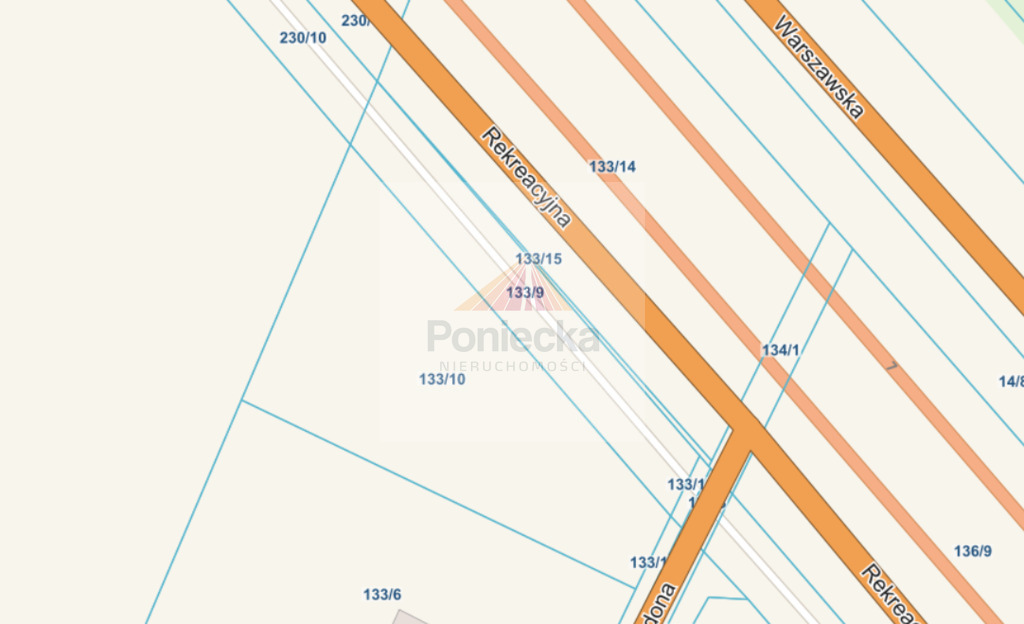 Działka położona jest w pierwszym rzędzie od Trasy, przy wewnętrznej drodze, tuż obok zjazdu z Trasy, po stronie wjazdu do Warszawy, jadąc z Gdańska.