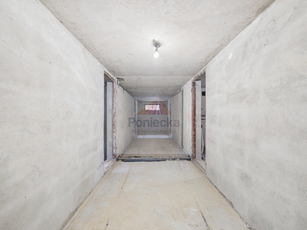 Wysokie podpiwniczenie (2,15 m) Pełna kondygnacja podziemna (ponad 85 m2) to idealne miejsce na magazyn, siłownię, warsztat lub spiżarnię.
