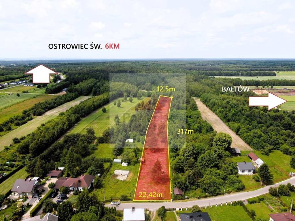 Otoczenie Teren suchy, w spokojnej okolicy, sąsiedztwo lasów i domów jednorodzinnych, z dogodnym dojazdem do infrastruktury miejskiej (kilka minut do Ostrowca Świętokrzyskiego)