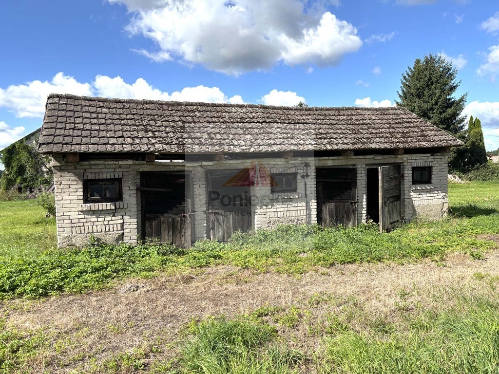 Na sprzedaż siedlisko (dom z 1960 r. do generalnego remontu, murowany, cegła, obora z czerwonej cegły, chlewek murowany i drewniana stodoła) na działce o powierzchni 1,9947 ha.