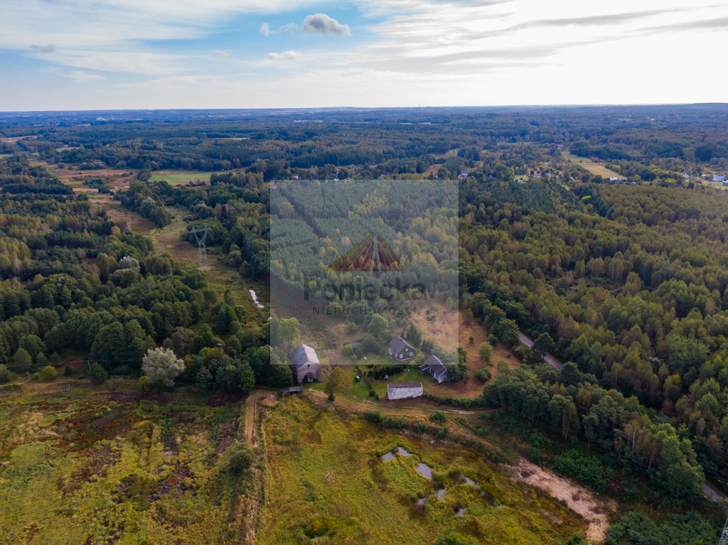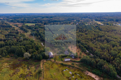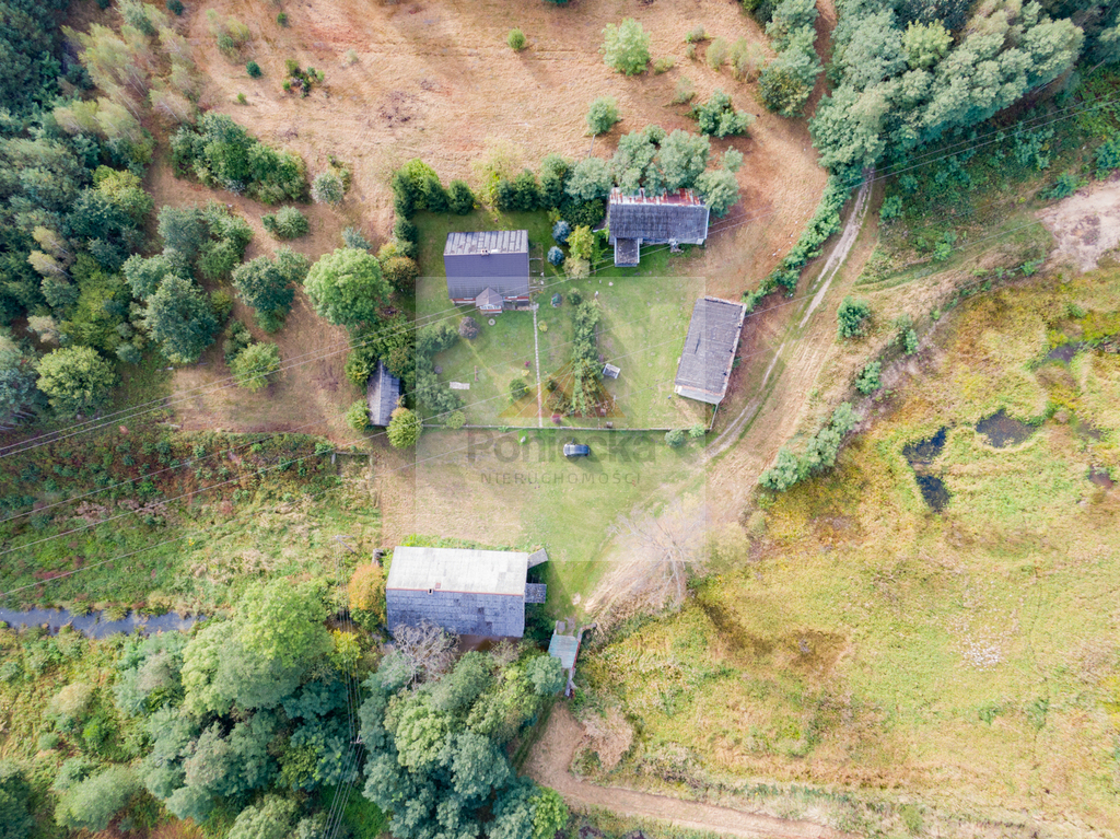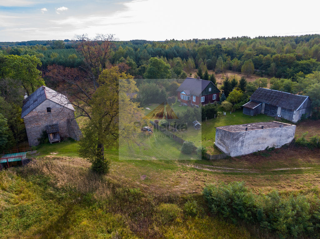 Na działce rolnej są stawy, łąki i las, drewniany budynek mieszkalny, stodoła, budynek gospodarczy.