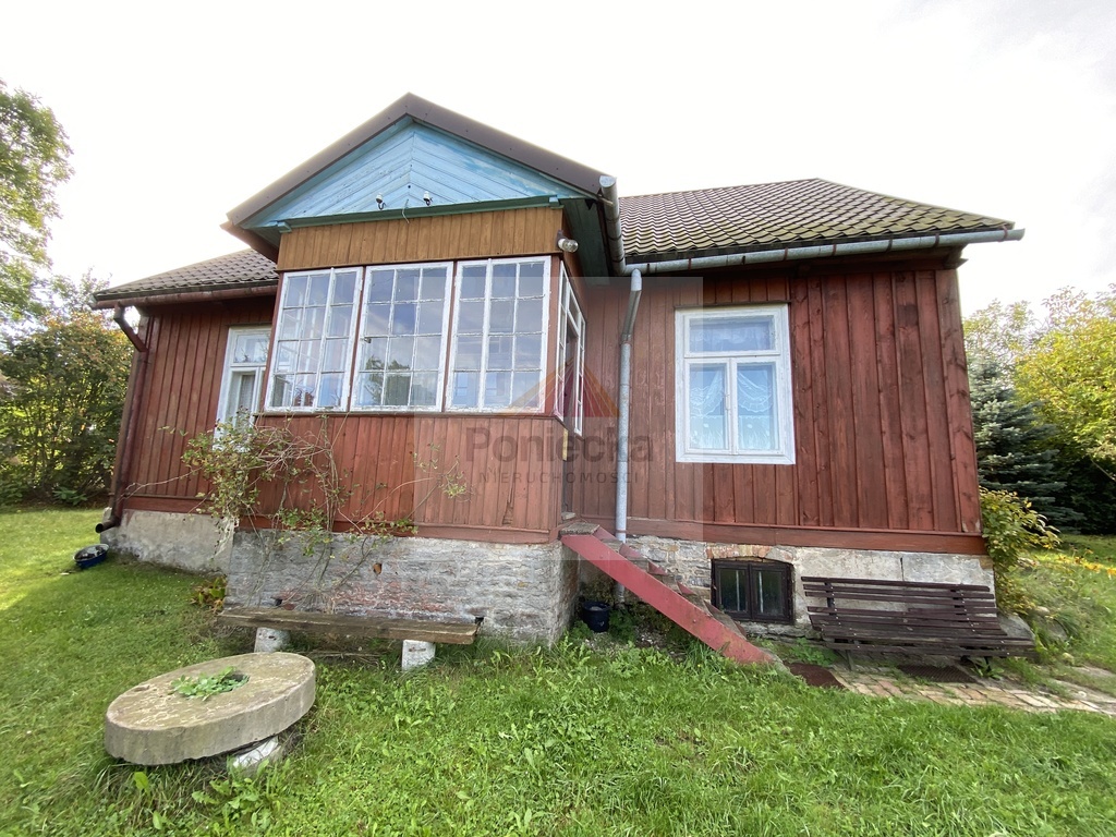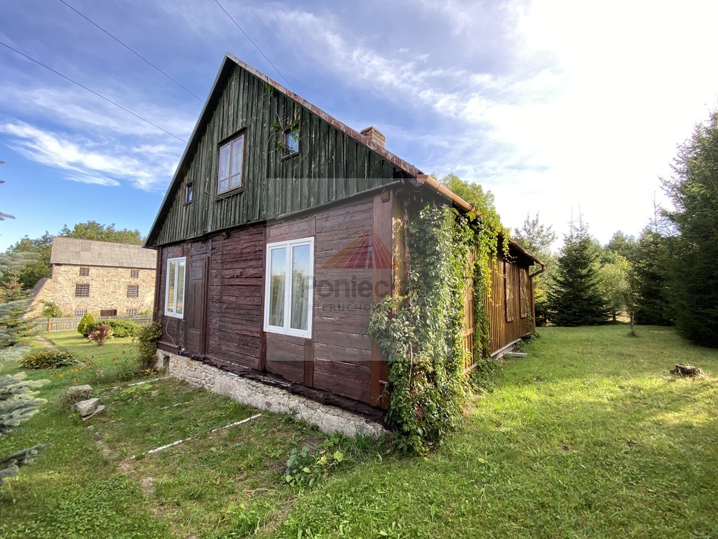 2. Drewniany prawie stuletni wolnostojący Dom na fundamentach z kamienia o powierzchni 110 m2. Dach pokryty bitumem.