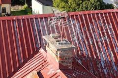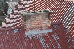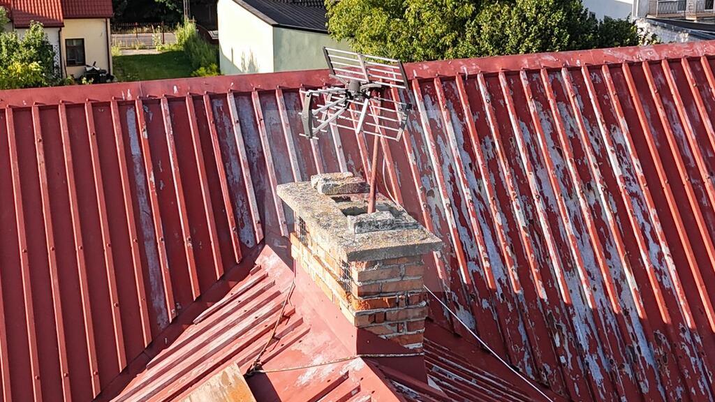Dom i dobudówka kryte blachą. Materiał z którego wykonano dobudówką cegła kratówka.