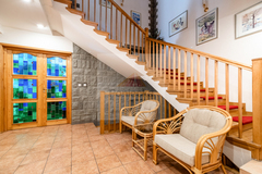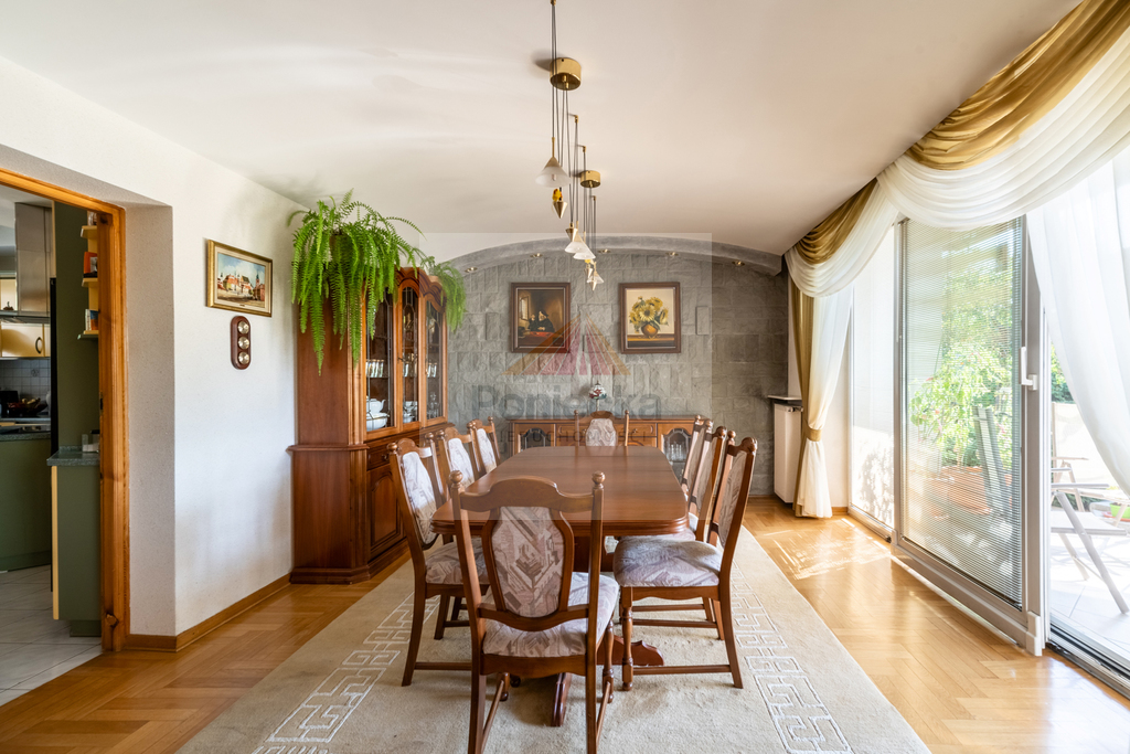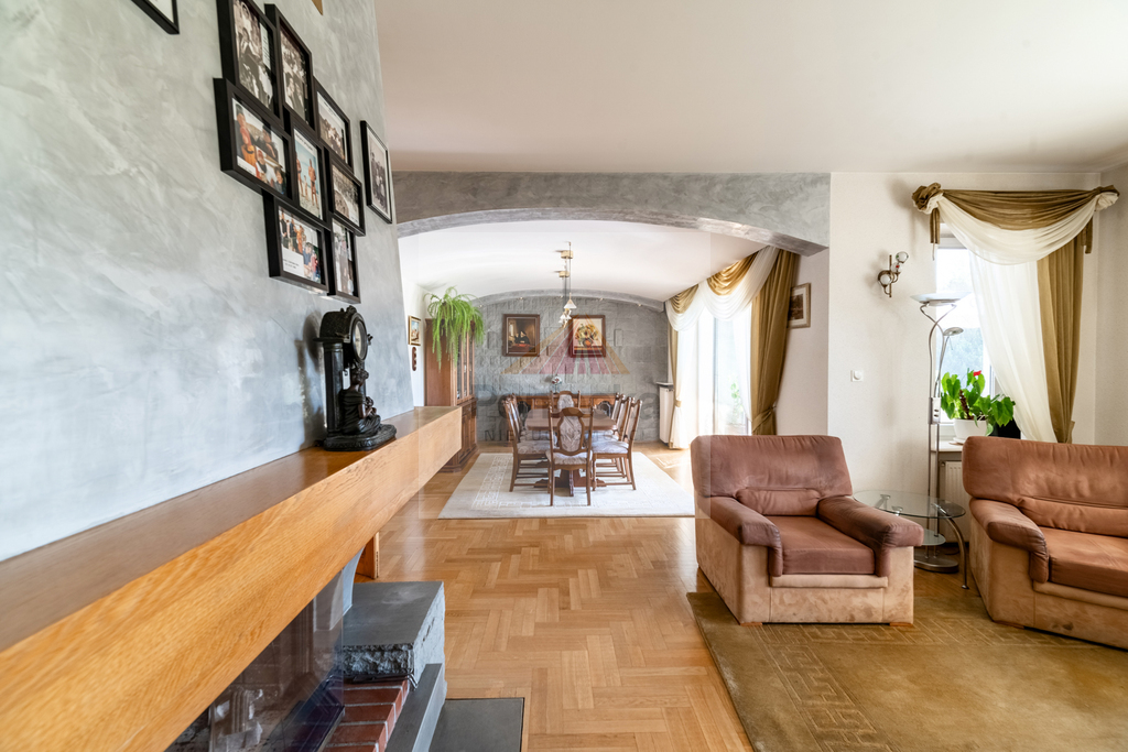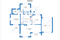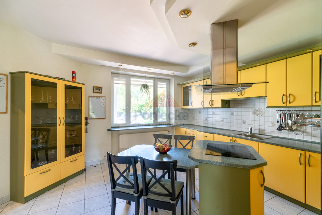 Dodatkowo na parterze jest wydzielona osobna część (kuchnia, łazienka, pokój z tarasem z wyjściem do ogrodu), mogąca być mieszkaniem dla rodziców, lub dzieci, lub dla gosposi.