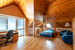 Na piętrze 2 sypialnie (21 i 19m2) z własnymi garderobami i łazienkami, oraz dodatkowa sypialnia/gabinet (11m2) oraz wyjście na strych.