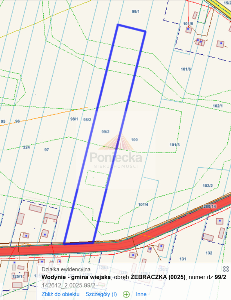 Działka nr 99/2 o powierzchni 18 871 m2, obręb Żebraczka, gmina Wodynie, powiat siedlecki.