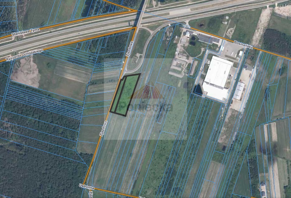 Bezpośredni wjazd z asfaltowej drogi publicznej (ul. Zjazdowa). Wjazd na autostradę A2 około 1.8 km od działki (Węzeł Konik).
