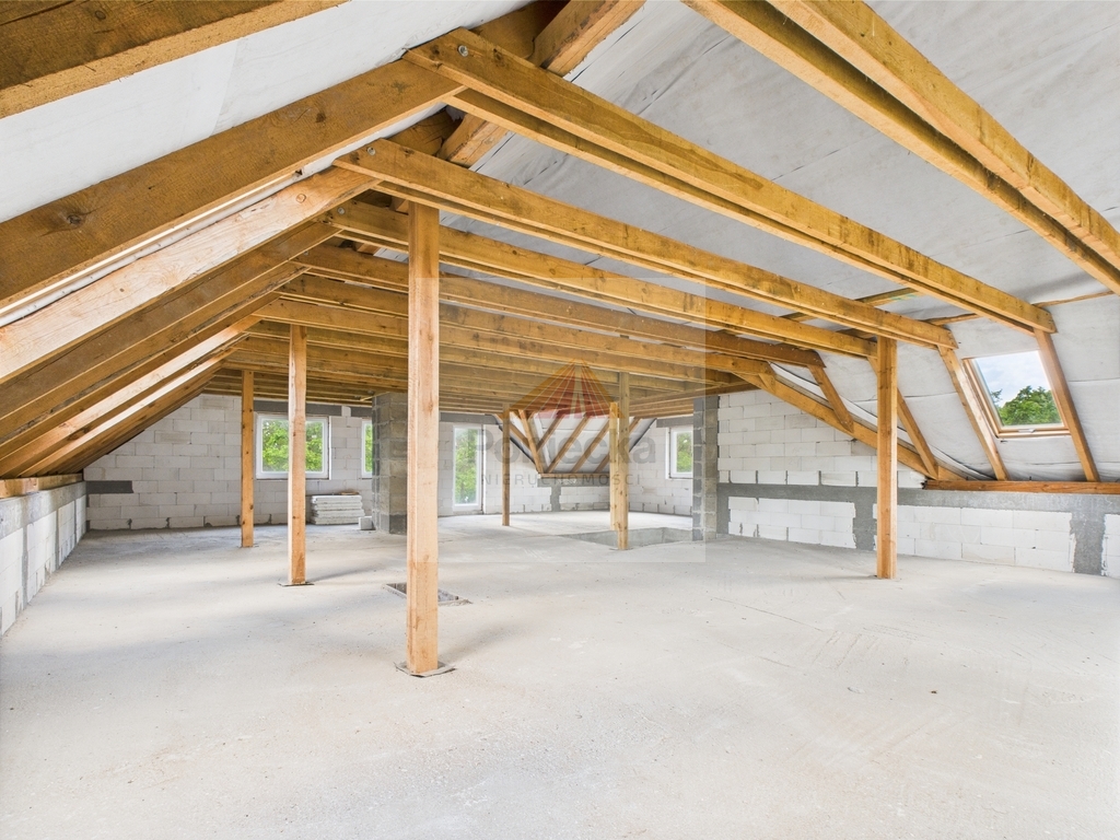 - Przedmiotem oferty jest ogrodzona działka o powierzchni 24 ary, zabudowana nowoczesnym domem w stanie surowym zamkniętym o powierzchni 283 m2, oraz budynkiem gospodarczym.