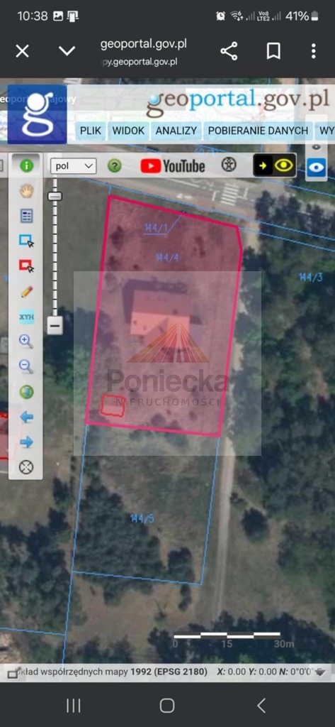 - oraz ogrodzona, niezabudowana działka o powierzchni 16 arów, położona w drugiej linii zabudowy.