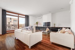 Całość została wykończona materiałami wysokiej jakości. Duże, drewniane okna oraz blisko 3 m wysokości mieszkania zapewniają doskonałe doświetlenie i poczucie przestrzeni.