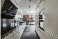 - otwartej kuchni z pełną zabudową meblową i wyspą,