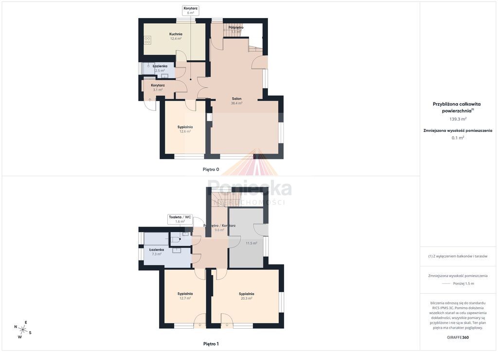 Zapraszam na spacer wirtualny i prezentację (na 1. piętrze na planie nie jest zaznaczone jedno z pomieszczeń - znajduje się nad kuchnią z parteru).