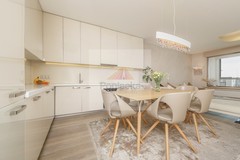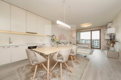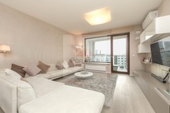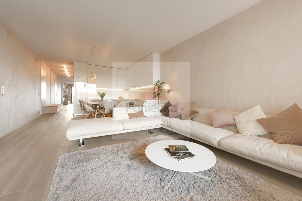 Apartament jest klimatyzowany (Gree) i wykończony został z najwyższej jakości materiałów na podłodze deska naturalna - dąb bielony, na ścianach tapeta z tkaniny alcantara (materiał miękki jak zamsz, odporny na zabrudzenia, łatwy w utrzymaniu, nie pochłaniający zapachów), na podłodze balkonu - deska tarasowa - modrzew syberyjski.