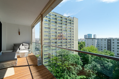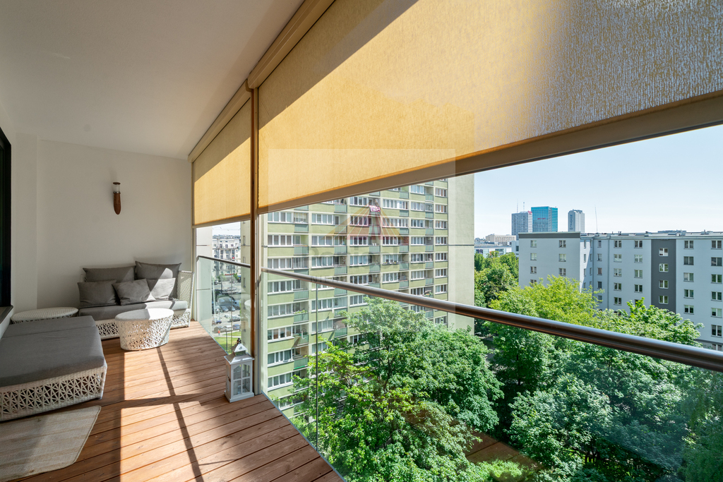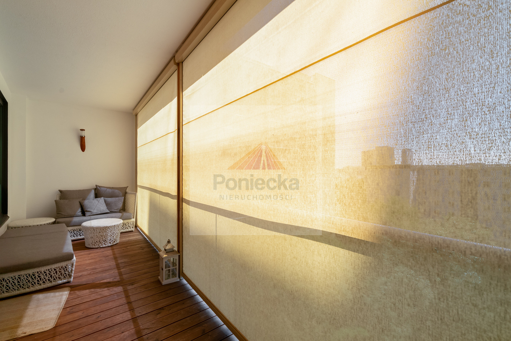 LOGGIA (12m2) z ekspozycją południowo-wschodnią, stanowiącą świetne miejsce do wypoczynku i na małe spotkania towarzyskie. Na podłodze deska tarasowa modrzew syberyjski impregnowany.