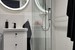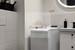-łazienka z kabiną prysznicową i pralką