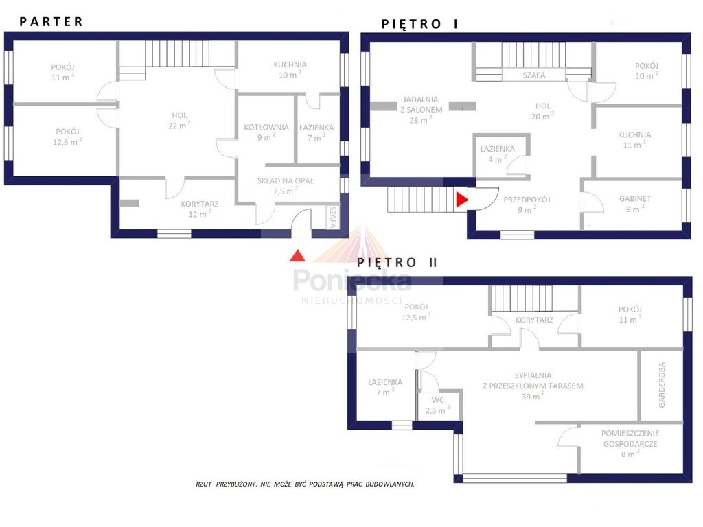 Pokój (12,5 m2).Pokój (11 m2).Korytarz (12 m2).Hol (22 m2). + spiżarka pod schodami.