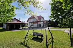 Z tyłu domu, bardzo duża przestrzeń pozwala na organizowanie rodzinnych spotkań, wspólnych gier, zabaw zachowując przy tym całkowitą prywatność.