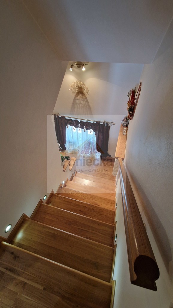 Teren działki jest bardzo zadbany, obsadzony wysokimi tujami, przed domem i garażem położona kostka. Wydzielone miejsce na wypoczynek, hamak, ławeczka.