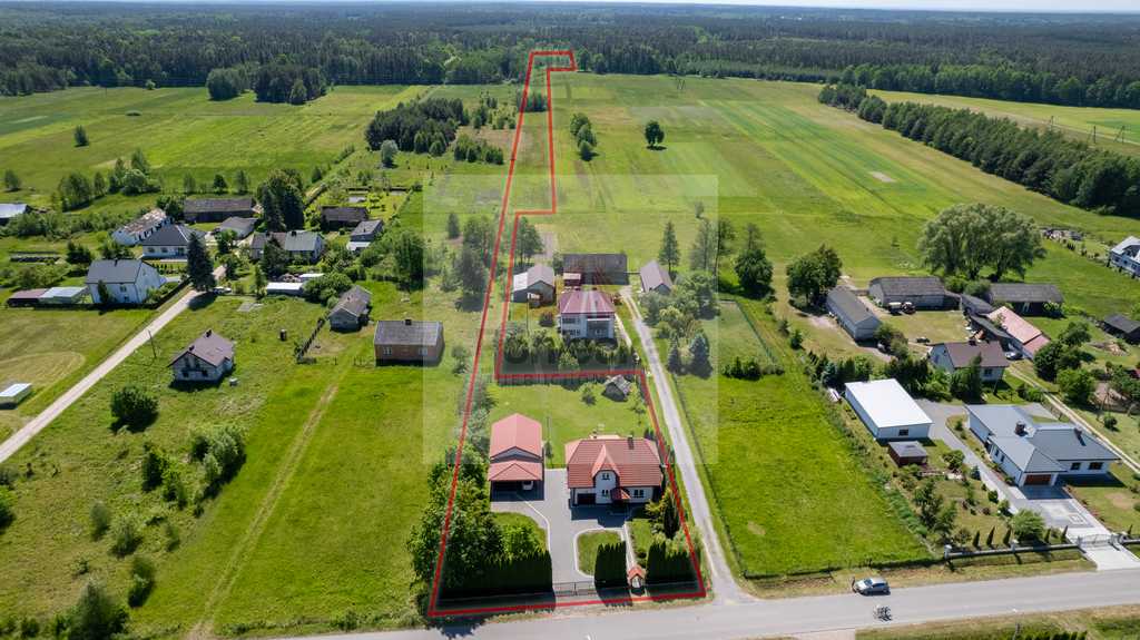 Nieruchomość położona jest na pięknej, zagospodarowanej działce o powierzchni ok. 2541 m2. Dodatkowo w ofercie sprzedawane są 3 kolejne działki o łącznej powierzchni 19 057 m2.