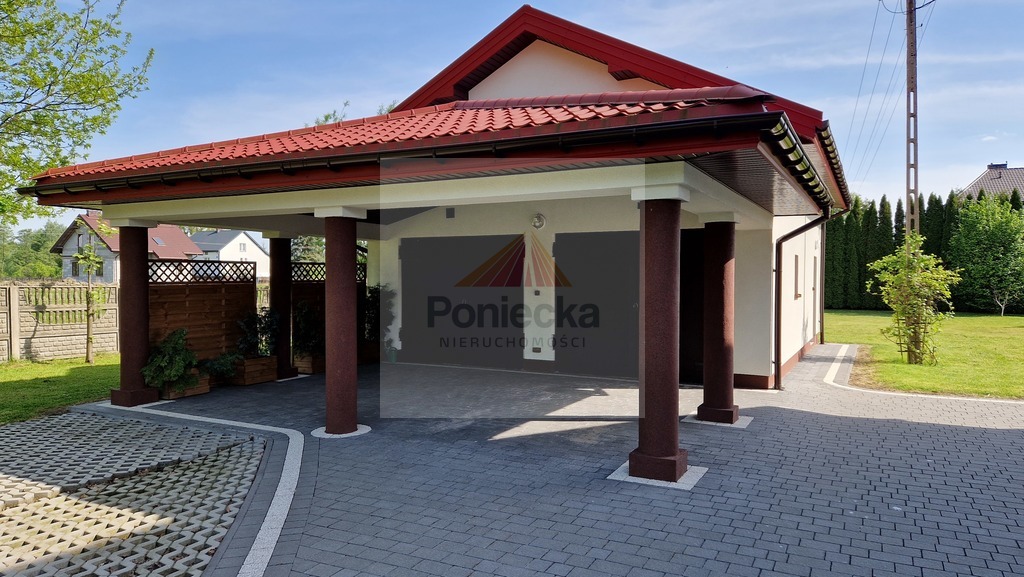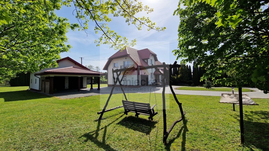 Oprócz domu na działce posadowiony jest osobny budynek z garażem dwustanowiskowym , z wiatą na 2 auta i dodatkowym pomieszczeniem, które może być wykorzystane jako warsztat, spiżarka, magazyn itp.