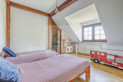 -Piętro (poddasze) 4 sypialnie z garderobami, 2 łazienki oraz hol.